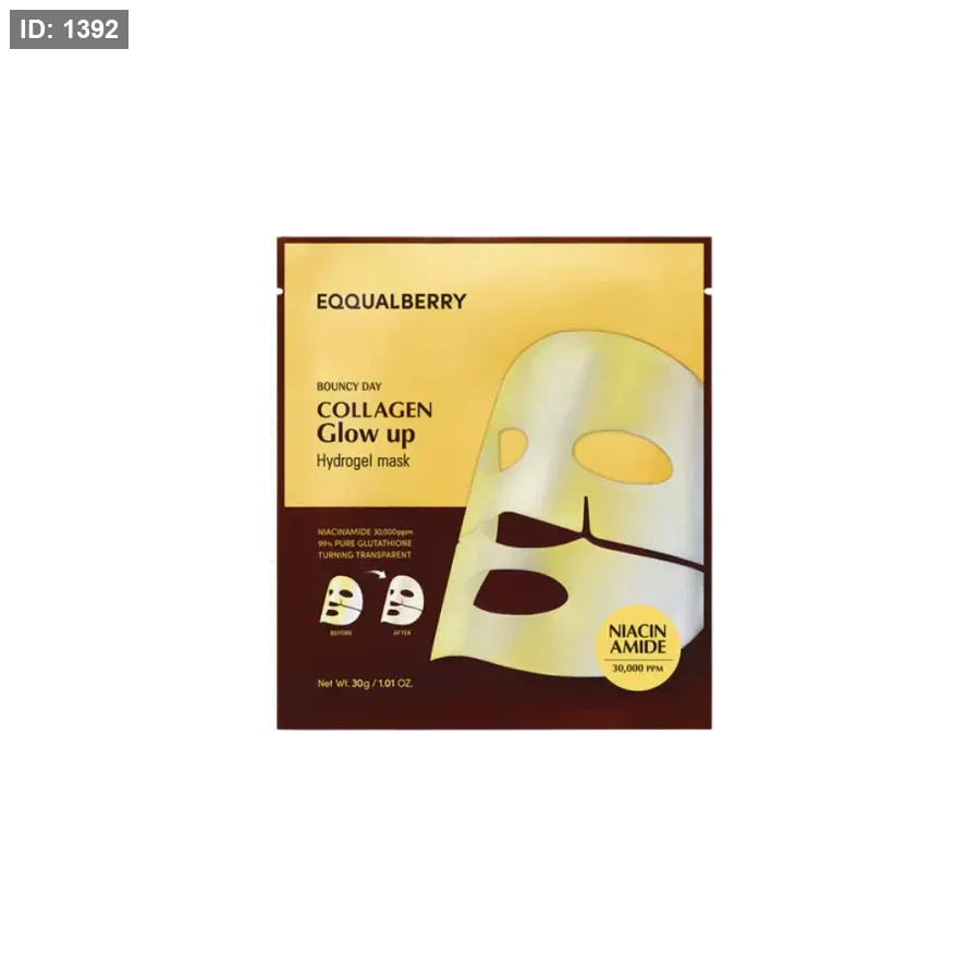 Equalberry Collagen Glow Up Hydrogel Mask هو ماسك هيدروجل غني بالكولاجين والنياسيناميد بتركيز 20,000ppm، يساعد على تفتيح البشرة، توحيد اللون، وتعزيز الإشراقة الطبيعية.