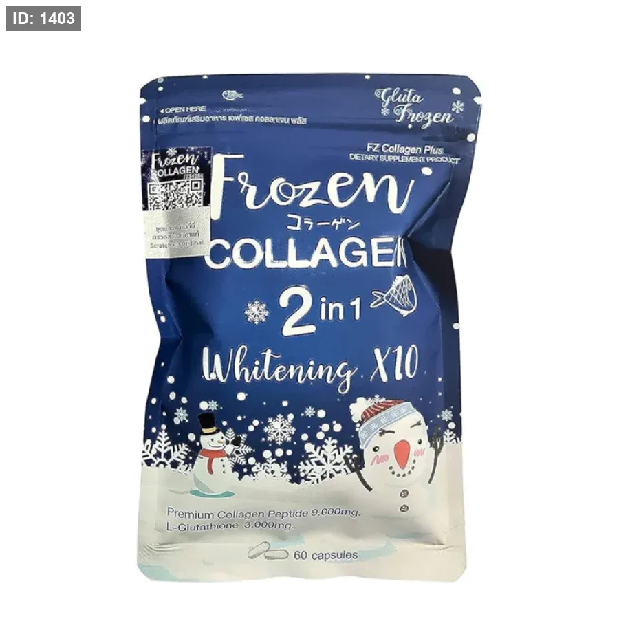 Frozen Collagen 2 in 1 Whitening X10 هو مكمل غذائي يحتوي على كولاجين ببتيد مع L-Glutathione، مصمم لدعم نضارة البشرة وتحسين مظهرها. يساعد على تعزيز إشراقة البشرة ودعم مرونتها من الداخل.