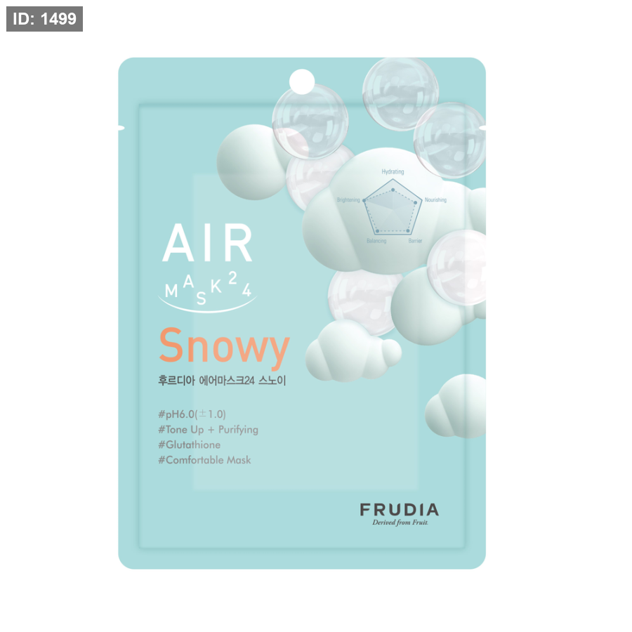 امنحي بشرتك ترطيباً وتجديداً فائقين مع Frudia Air Mask 24 Snowy، القناع المرطب المصمم لتغذية البشرة ومنحها إشراقة طبيعية صحية. تركيبة القناع الخفيفة تشبه الهواء وتعمل على ترطيب البشرة بعمق وتجديد حيويتها، لتبدو ناعمة ومشرقة طوال اليوم.