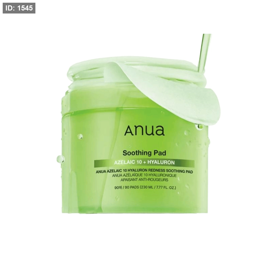 بادات العناية بالبشرة Anua Soothing Pad مصممة لتهدئة البشرة الحساسة وتقليل الاحمرار بفضل تركيبة تحتوي على 10% أزيليك أسيد مع حمض الهيالورونيك.